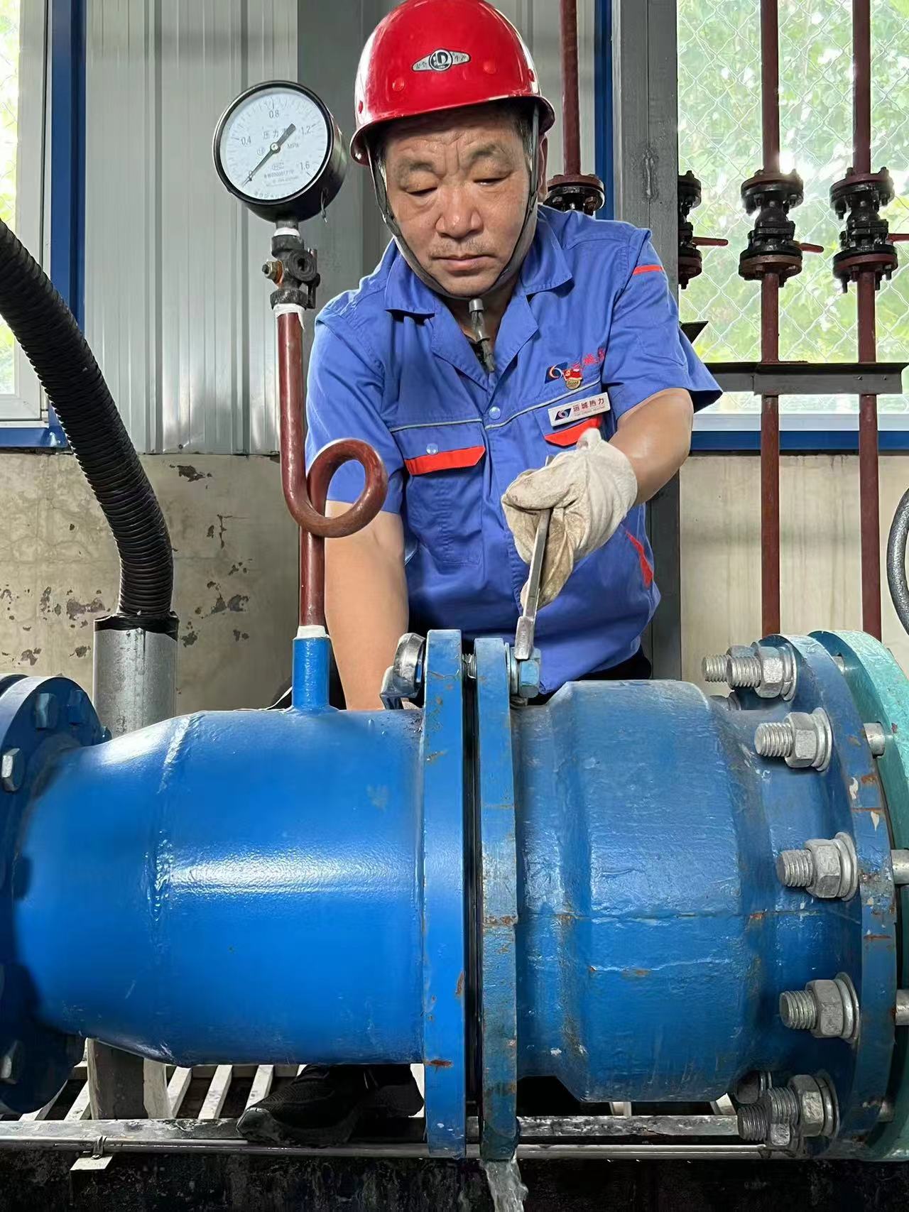 在保養(yǎng)過程中,他發(fā)現(xiàn)人民路08井室內(nèi)DN800閥門不能完全打開,立即對閥門進行拆卸,因軸承磨損破裂,無法查看設(shè)備型號,他又把閥門傳動機構(gòu)一件一件的拆卸,用游標(biāo)卡尺測量尺寸,最終確定閥門型號。冒著井室高溫,經(jīng)過2天時間,將閥門更換完成。在檢修維保中,他始終保持高度認(rèn)真、負(fù)責(zé)的態(tài)度,堅持質(zhì)量第一的原則,對每一個閥門都進行細(xì)致入微的檢查,每一次維修都精益求精、力求完美,確保閥門始終處于良好的運行狀態(tài),為冬季設(shè)備的正常運行保駕護航。