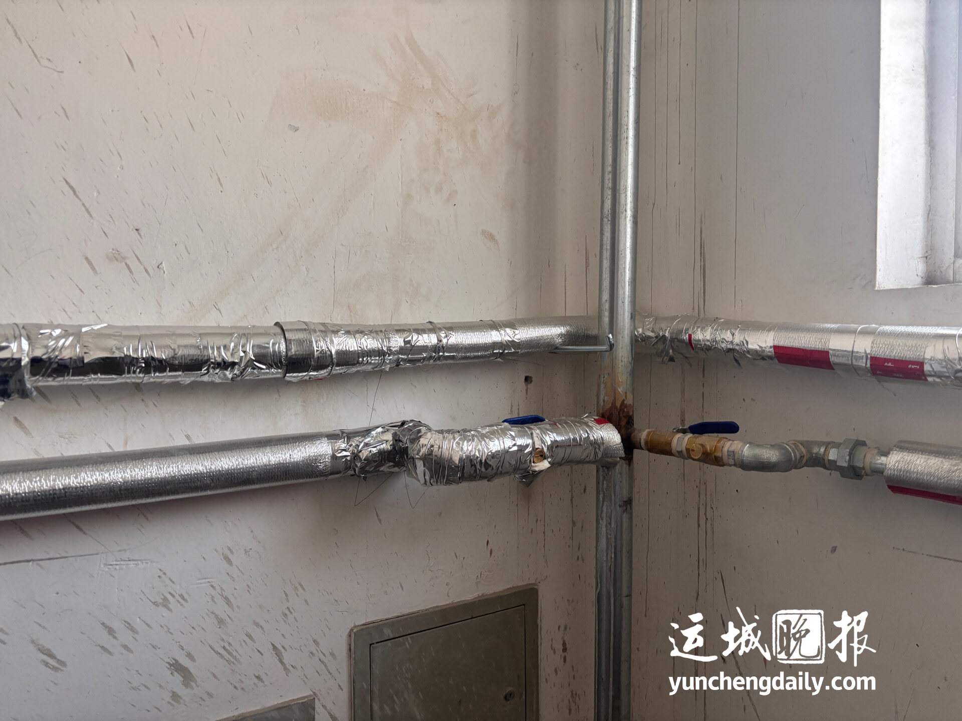 今年享受到供熱管網分戶改造溫暖的,還有鹽湖區南城街道鹽化社區鹽化四院的居民。走進該小區4號樓,可以看到部分單元的樓道里,供熱管網已更換完畢,管道外部還采取了保溫措施。